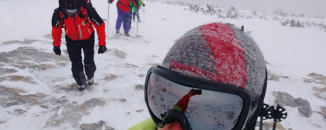 Bild Bei 80 km/h Wind, Schneetreiben und Nebel stiegen die Bergretter zur Fischerhütte auf. Simon Frank / ÖBRD Puchberg