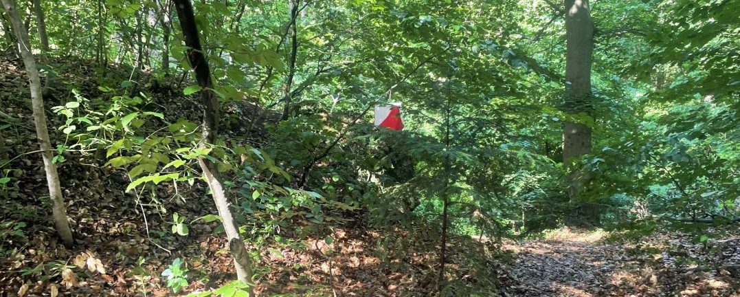 Für die Bergretter*innen gab es dieses Mal drei unterschiedliche Strecken zur Auswahl, die sich in der zu bewältigenden Distanz (zwischen drei und sechs Kilometern) und den zu überwindenden Höhenmetern (200 bis 400 Höhenmeter) unterschieden. In Summe stellten sich 16 Läufer*innen (und zwei Hunde) der Herausforderung und konnten diese auch erfolgreich meistern. (-> Bild „Orientierungsposten im Wald“)
