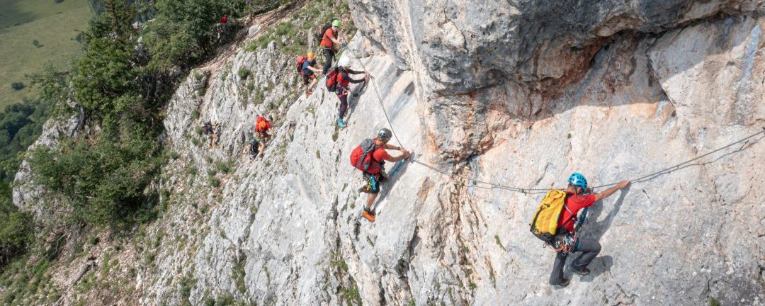 Vom 16.-19.06. fand der Basiskurs Sommer auf der Hohen Wand statt. Sechs Kursgruppen mit je sechs Teilnehmer*innen absolvierten in den Felswänden ihre Grundausbildung – begleitet und betreut von je zwei Lehrwarten, die für die Vermittlung der Kursinhalte und für die Sicherheit der Gruppe verantwortlich waren. In Summe waren 60 Personen, in vorwiegend roten Jacken, bei verschiedensten Bergemethoden zu beobachten.