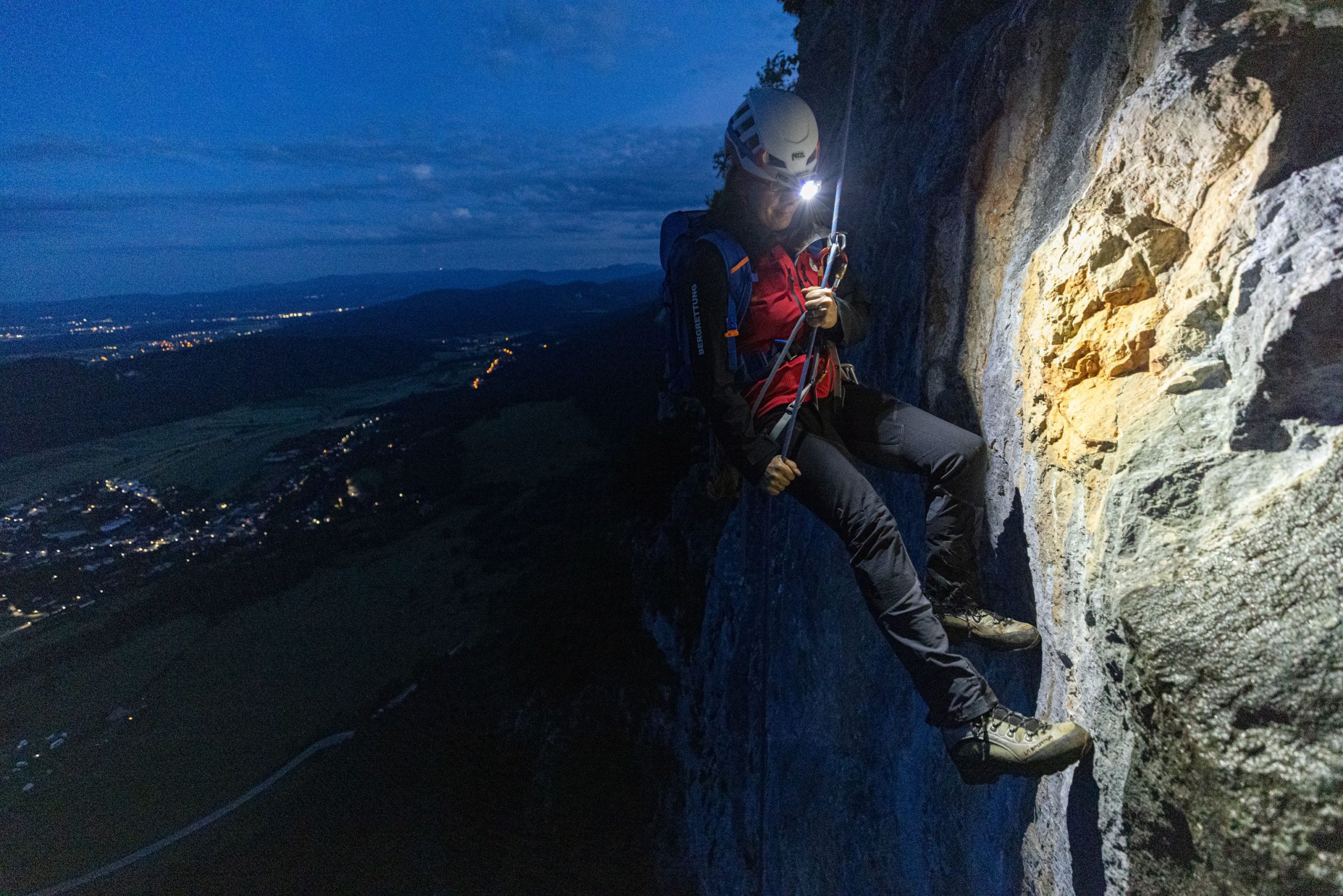 Am zweiten Tag startet der Kursbetrieb um 08:30. Der Tag wird noch lange. Bei Tageslicht werden Flaschenzüge vom Lehrpersonal vorgezeigt und von den Teilnehmer*innen angewendet. Schön langsam wechselten wir vom Schulen ins einsatzorientierte Anwenden. Das ist das Tagesziel. Dieser Tag endete aber nicht mit dem Abendessen. Um 21:00 Uhr wird es noch mal laut rund um unser Quartier. Die Nachtübung steht am Programm. Übungen bei Dunkelheit sind die Königsklasse in der Ausbildung. Die objektiven Gefahren sind schwerer zu erkennen. Die Organisation am Klettergurt ist bei Dunkelheit wichtig. Ein Griff und der richtige Ausrüstungsgegenstand sollte zur Hand sein. Die Anspannung steigt. Beim Zustieg wird fast kein Wort gesprochen. Alle sind konzentriert und warten auf die Anweisungen der Lehrwarte. Erst nach Mitternacht kommen die Gruppen zurück. Die Erkenntnisse werden in der Feedbackrunde nachbesprochen und Zeit für ein kühles Getränk muss danach noch sein.